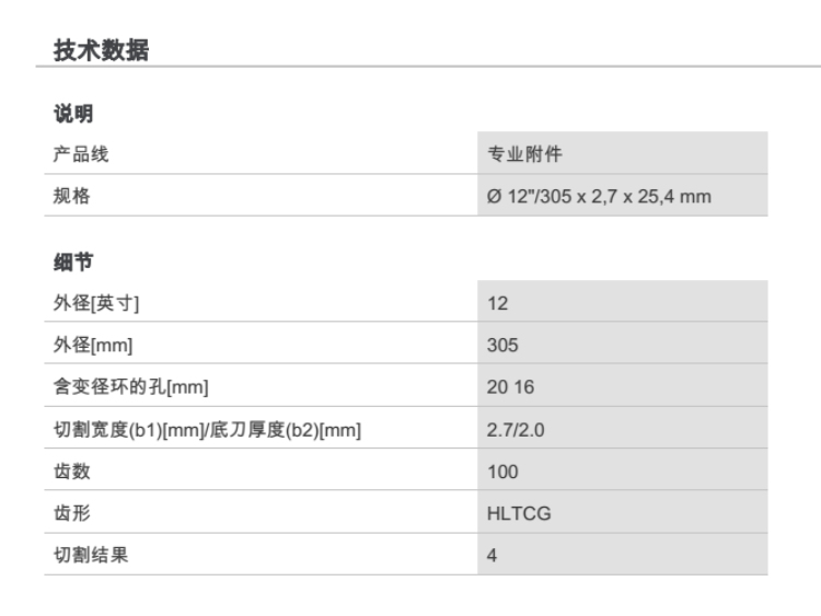 产品名字:博世合金圆锯片305*100T