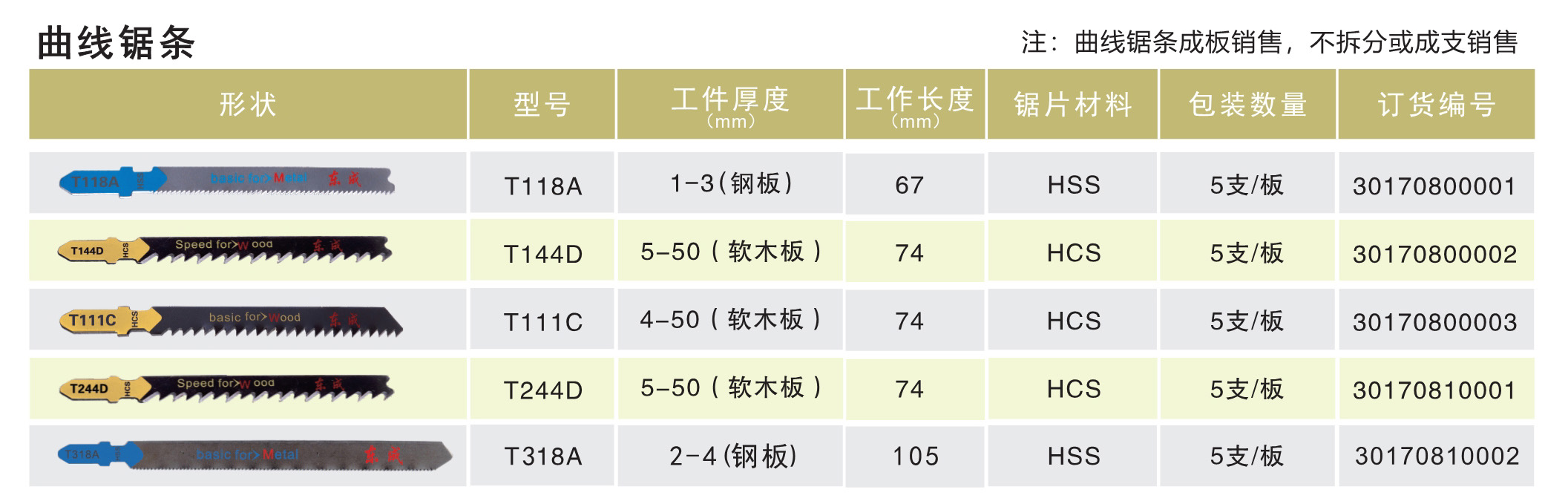 产品名字:东成曲线锯条T244D