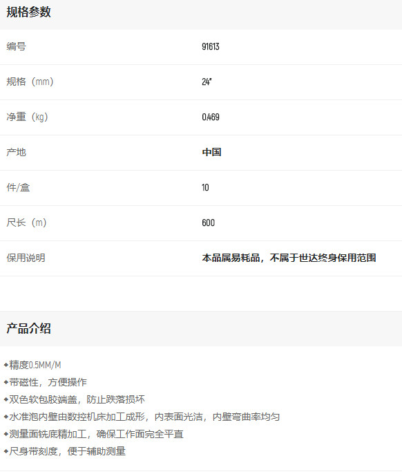 产品名字:世达带磁水平尺600mm/24寸