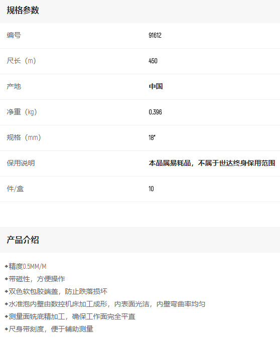 首页>产品中心>测量工具>水平尺>世达带磁水平尺450MM/18"